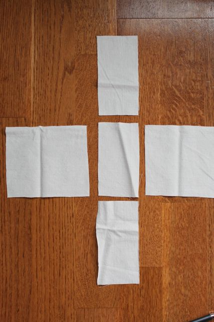 14. BAG: Begin by sewing your muslin liner first so that you get idea of size and construction. Cut out 2 pieces @ 4.25"x5" (front / back), 2 pieces @ 2.5"x5" (sides) and 1 piece @ 1.5"x3.25" (bottom). You will be using 1/2" seams.